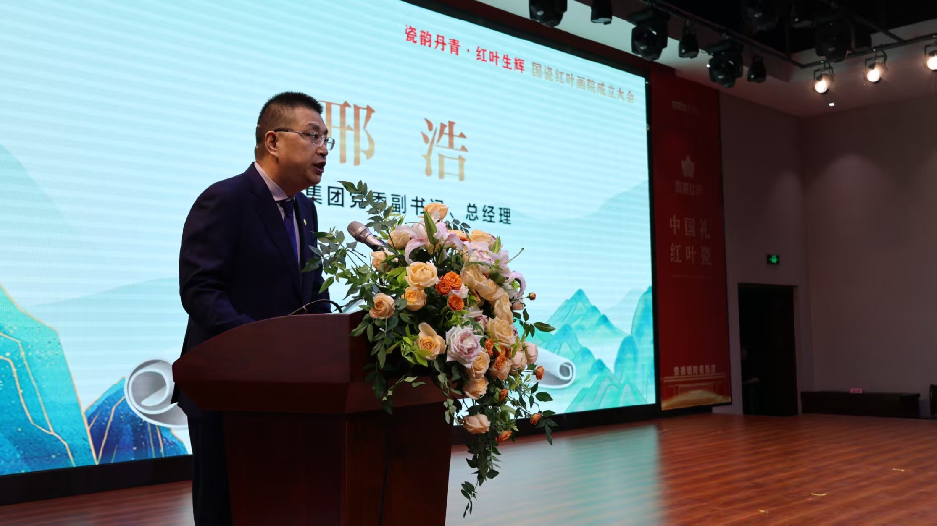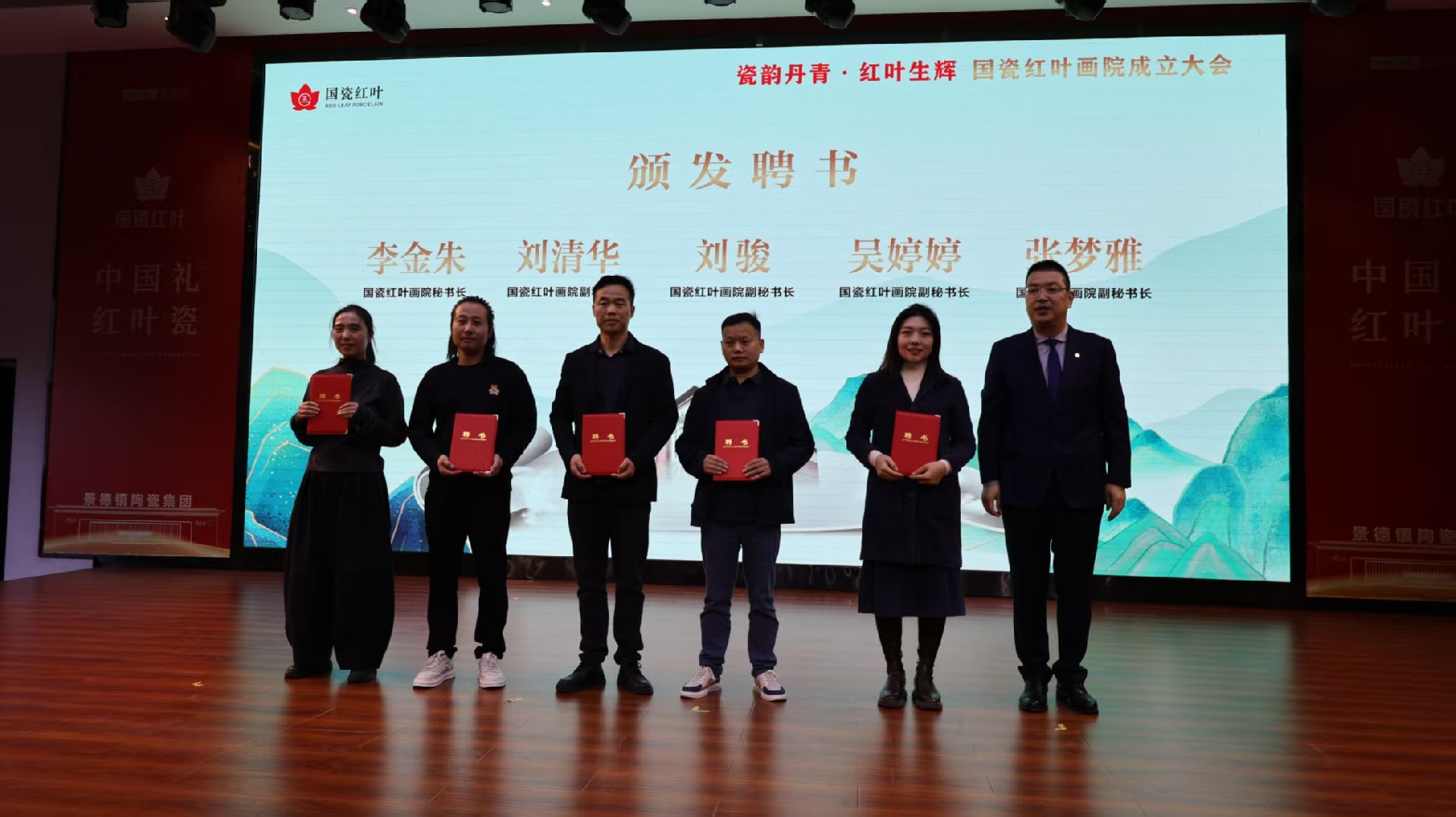 瓷都盛會話傳承,紅葉溢彩繪新篇。11月9日上午,景德鎮(zhèn)陶瓷集團旗下國瓷紅葉畫院成立大會在紅葉陶瓷國瓷館隆重舉行。江西省輕工業(yè)聯(lián)合會理事長鄭正春,景德鎮(zhèn)市政府黨組成員、昌南新區(qū)黨工委書記余立新,景德鎮(zhèn)陶瓷研究院黨組書記、院長吳浪,江西陶瓷工藝美院黨委委員、副院長朱輝球,江西省輕工業(yè)聯(lián)合會秘書長崔軍,景德鎮(zhèn)陶瓷協(xié)會秘書長陳華清,中國工藝美術(shù)大師劉偉,中國工藝美術(shù)大師黃景藏,景德鎮(zhèn)陶瓷大學設(shè)計藝術(shù)學院院長余劍峰,景德鎮(zhèn)學院陶瓷美術(shù)與設(shè)計藝術(shù)學院黨委書記陳后輝,市工信局副局長朱成,市昌南新區(qū)黨工委委員、管委會副主任張英,景德鎮(zhèn)新聞傳媒集團副總經(jīng)理丁添,北京天壇文化產(chǎn)業(yè)有限公司CEO王莎莎,嗶哩嗶哩Vsinger業(yè)務部—市場總監(jiān)劉冰潔及景德鎮(zhèn)陶瓷集團領(lǐng)導班子等領(lǐng)導和嘉賓出席大會。