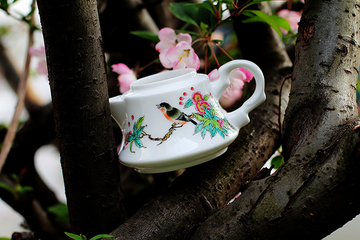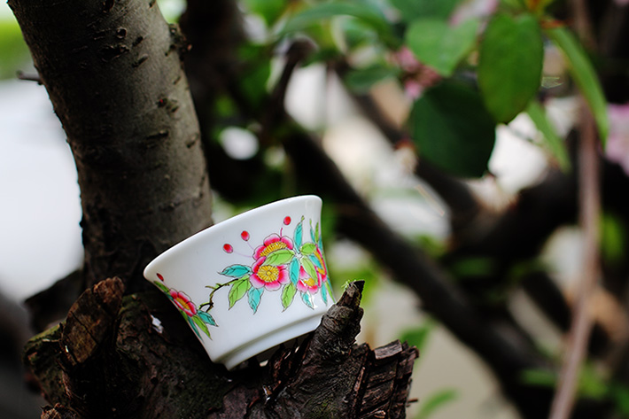 手繪功夫茶具(竹質(zhì)茶海)水點桃花