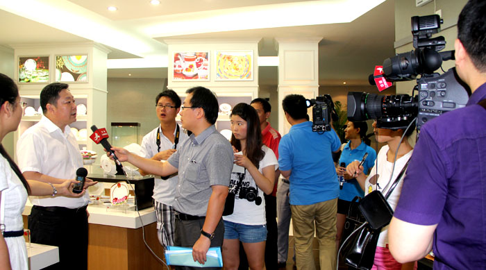 7月7日上午,由中央電視臺(tái)、光明日報(bào)、江西日報(bào)、江西電視臺(tái)、江西人民廣播電臺(tái)等20多家中央、省級(jí)媒體組成的記者采訪團(tuán)專程來景,集中采訪報(bào)道我市陶瓷文化及產(chǎn)業(yè)發(fā)展情況。公司黨委書記、董事長王耀全程陪同采訪。