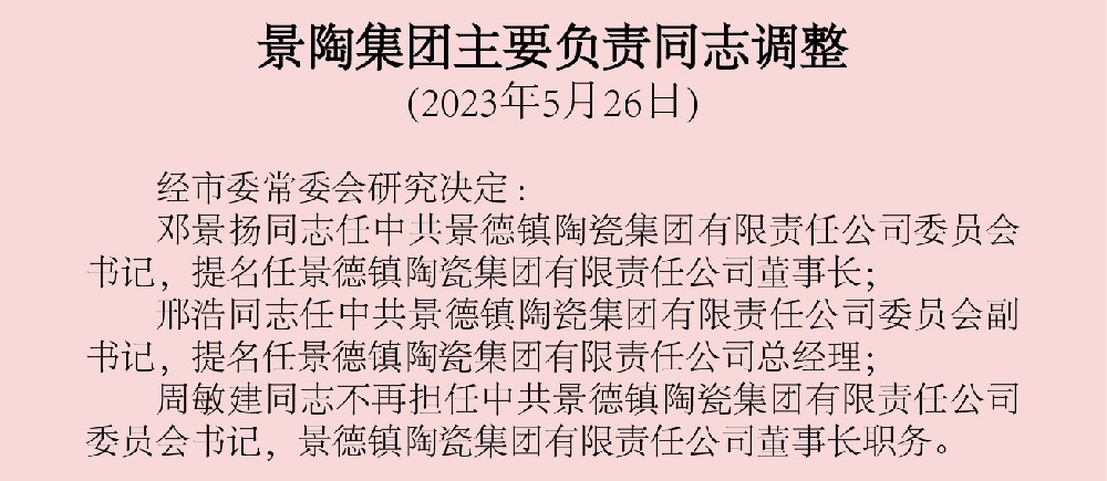 景陶集團(tuán)主要負(fù)責(zé)同志調(diào)整