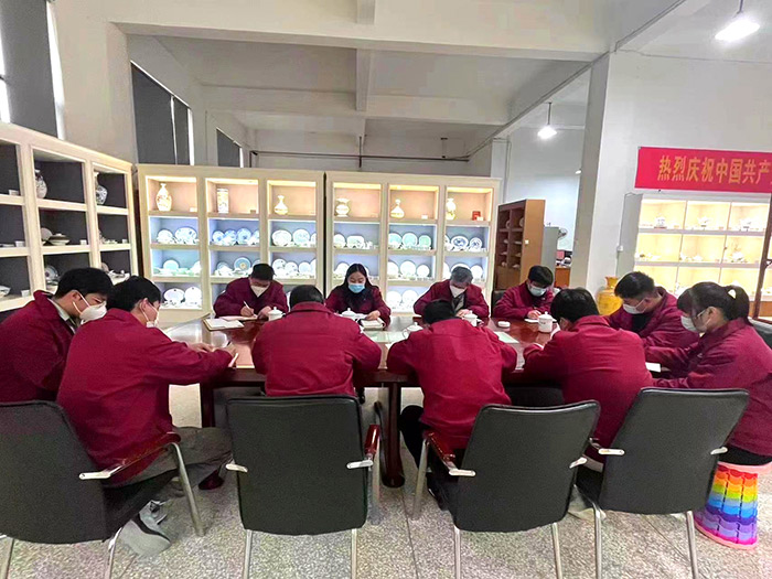 12月8日,集團公司黨委委員、紀委書記、監(jiān)察專員朱惠敏深入掛點工作聯(lián)系點——金品陶黨支部宣講黨的二十大精神。
