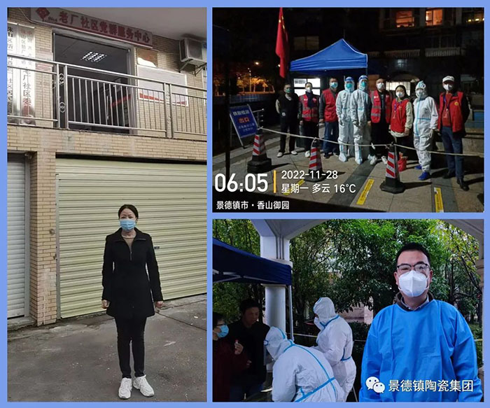 班子成員靠前指揮、科學(xué)調(diào)度、干在一線。景陶集團(tuán)黨委書(shū)記、董事長(zhǎng)周敏建既是集團(tuán)公司疫情防控工作總指揮,又是所在社區(qū)居住樓樓長(zhǎng),同時(shí),還以黨員志愿者身份,每天堅(jiān)守在防疫一線。
