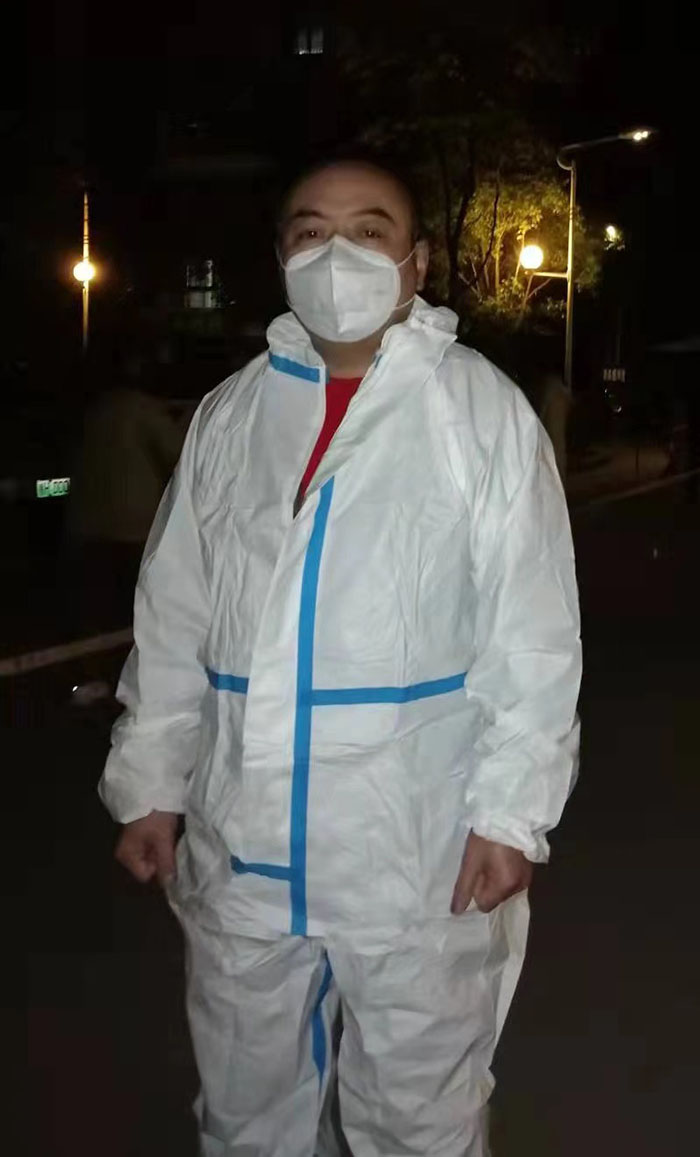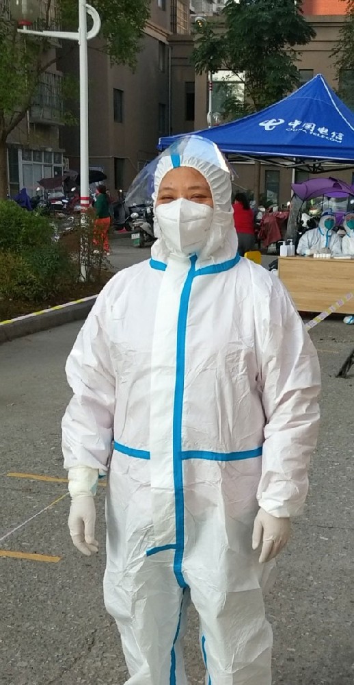 每天早上的鬧鐘固定設在在4:30分,鈴聲想起,夫妻二人便起床洗漱吃早餐,5點就趕到社區(qū)防疫崗位,有條不紊的穿戴好防護服,為全員核酸做好準備。當醫(yī)護人員開始檢測的時候,她們夫婦便在核酸檢測隊伍周圍做好居民引導,維護隊伍秩序,防止人員扎堆和核酸采集后的長時間滯留,每天采集的時間都是五六個小時,她們都會認真負責的堅守到隊伍結(jié)束。大半天核酸采集完成,口干舌燥不說,連喝水如廁等生活細節(jié)都要嚴格遵守防疫措施,在核酸采集地維護秩序每天不知不覺也達到兩萬步。