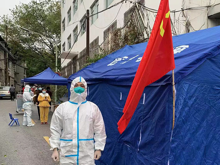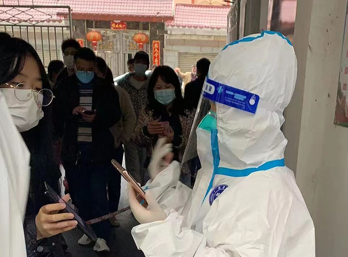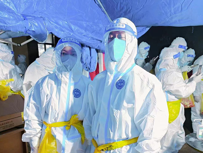 社區(qū)“雙報到”,抗疫顯擔當。疫情來襲,黨員穿上“大白”防護服、做好秩序維護、發(fā)放健康檢測表、信息錄入、政策宣傳、掃碼查驗、上門進行采集核酸……。在各管控小區(qū),黨員志愿者們的身影,一直在為小區(qū)居民們辛苦地付出著?!拔覀兌际切^(qū)業(yè)主,又都黨員志愿者,在這種特殊時刻更要挺身而出,體現(xiàn)作為黨員的本分,在危難時刻顯擔當。根據防疫工作安排,每天的工作時長都不固定,但我們每天都從半夜工作到凌晨。我們社區(qū)大家的配合度都很高,整個小區(qū)情況比較平穩(wěn),我們覺得能夠在疫情防控工作貢獻一些力量感到很開心?!蔽S狼逭f道。