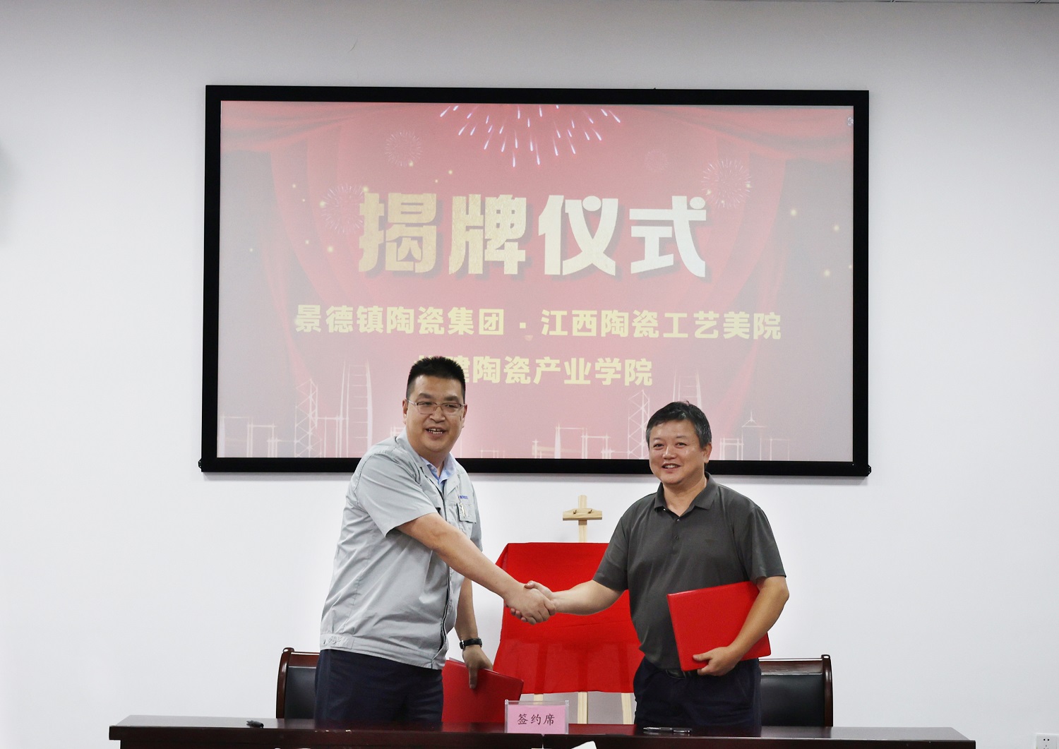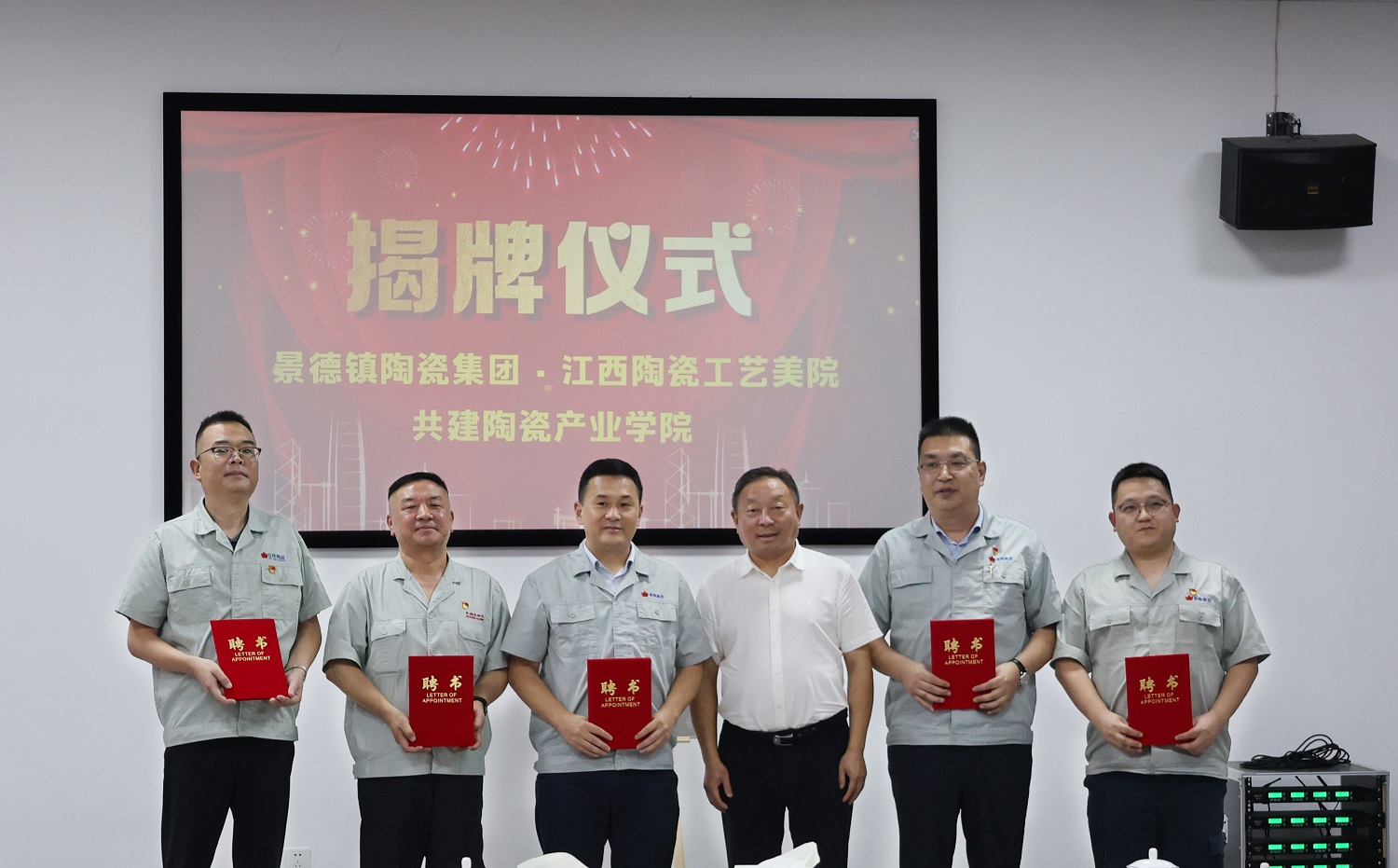 為深入貫徹落實國家推進“一體兩翼”重大戰(zhàn)略部署,更好地服務地方陶瓷產業(yè)發(fā)展,助推陶瓷職業(yè)教育發(fā)展。8月16日下午,在景德鎮(zhèn)陶瓷集團行政樓一樓會議室隆重舉行江西陶瓷工藝美術職業(yè)技術學院與景德鎮(zhèn)陶瓷集團共建陶瓷產業(yè)學院揭牌儀式。江西陶瓷工藝美術職業(yè)技術學院黨委書記方文龍,黨委委員、副院長朱輝球,景德鎮(zhèn)陶瓷集團黨委書記、董事長鄧景揚,黨委副書記、總經理邢浩,黨委委員、工會主席鄧必春,黨委委員胡軼,黨委委員、副總經理王小勤出席揭牌儀式。學院及企業(yè)相關部門負責人參加。