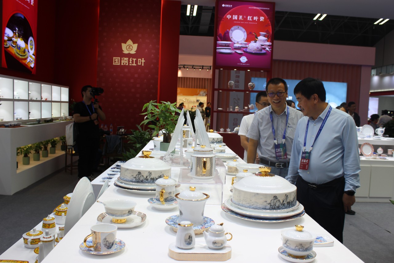 展會期間,展廳內(nèi)人流如織、氣氛熱烈非凡,多位貴賓蒞臨紅葉展廳參觀指導。黨委書記、董事長鄧景揚詳細介紹了此次參展的多款新品以及國瓷紅葉的出海故事和創(chuàng)新成果。各位貴賓對此次國瓷紅葉的多款新品給予了高度評價和充分肯定并鼓勵國瓷紅葉多利用自身優(yōu)勢,積極研發(fā)新產(chǎn)品,開拓新巿場,為傳承中國傳統(tǒng)文化和創(chuàng)新發(fā)展做出更大貢獻。
