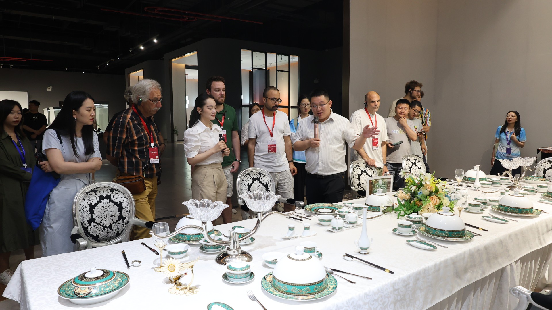 7月16日下午,參加2025年“一帶一路”記者組織論壇景德鎮(zhèn)線路主題采風(fēng)活動的成員,走進(jìn)紅葉陶瓷國瓷館進(jìn)行參觀采訪。本次采風(fēng)以“瓷鏈?zhǔn)澜纭の拿骰ヨb——‘一帶一路’視角下的景德鎮(zhèn)陶瓷傳承與創(chuàng)新”為主題,由市委宣傳部(市政府新聞辦)、市新聞工作者協(xié)會、市融媒體中心聯(lián)合主辦。來自50多個國家和地區(qū)的記者組織負(fù)責(zé)人及媒體代表約58人參與了活動。景德鎮(zhèn)陶瓷集團(tuán)黨委委員、副總經(jīng)理王小勤全程陪同講解。